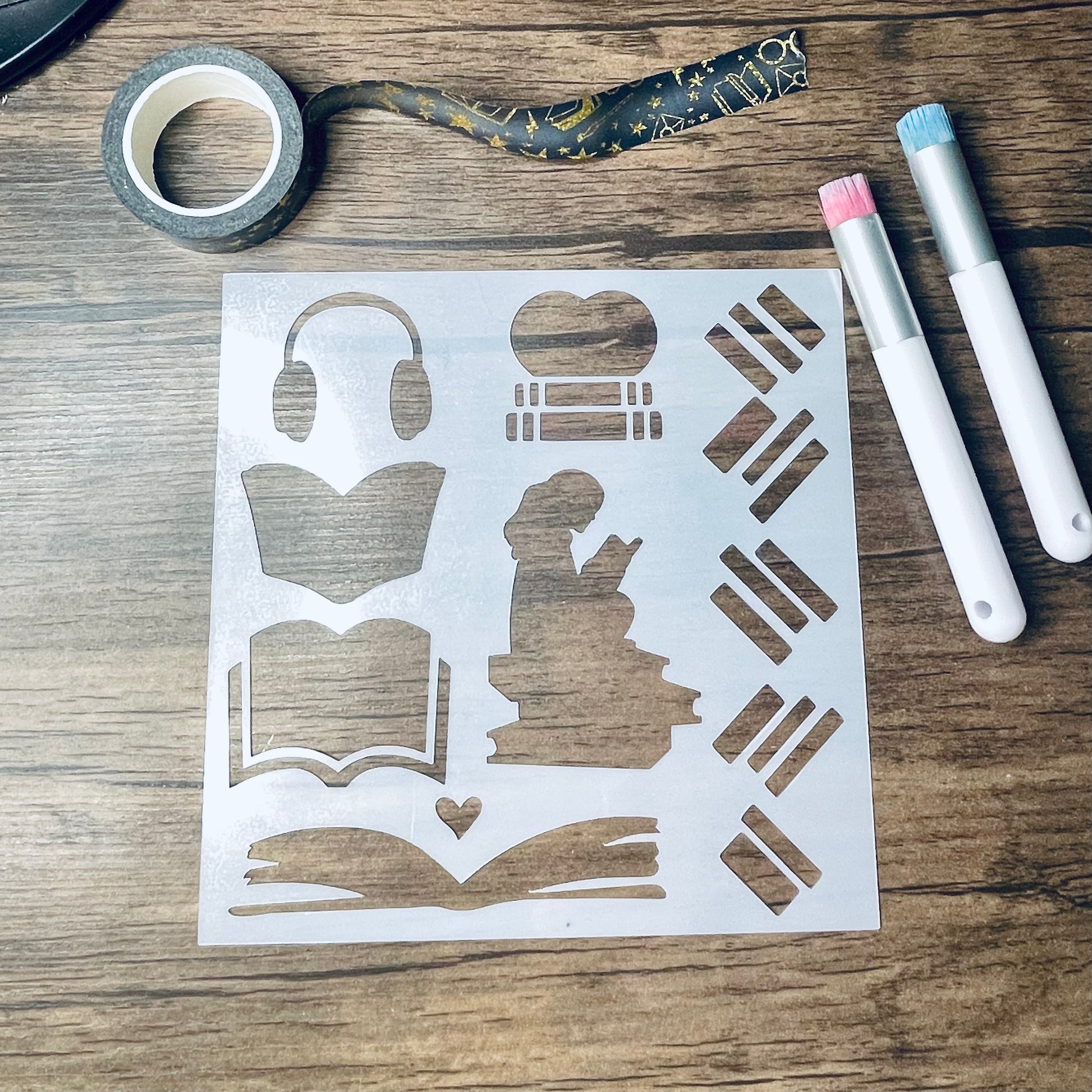Add a little bit of unique flair to your planners, journals, Bujos, or scrapbooks with the All Booked Stencil! Great for your basic journal layouts and to add elements to every layout!