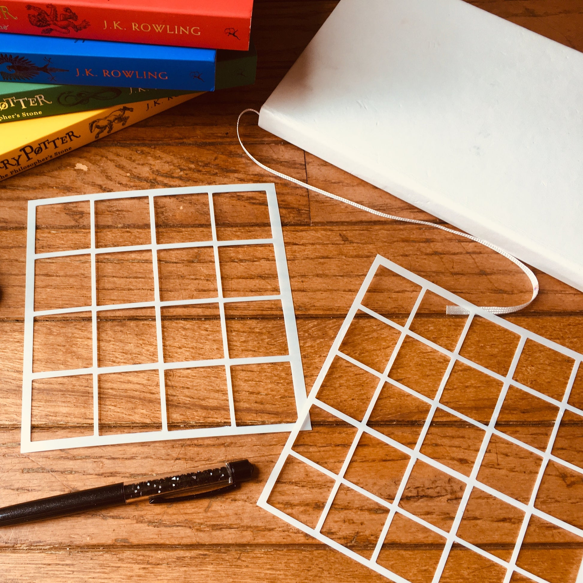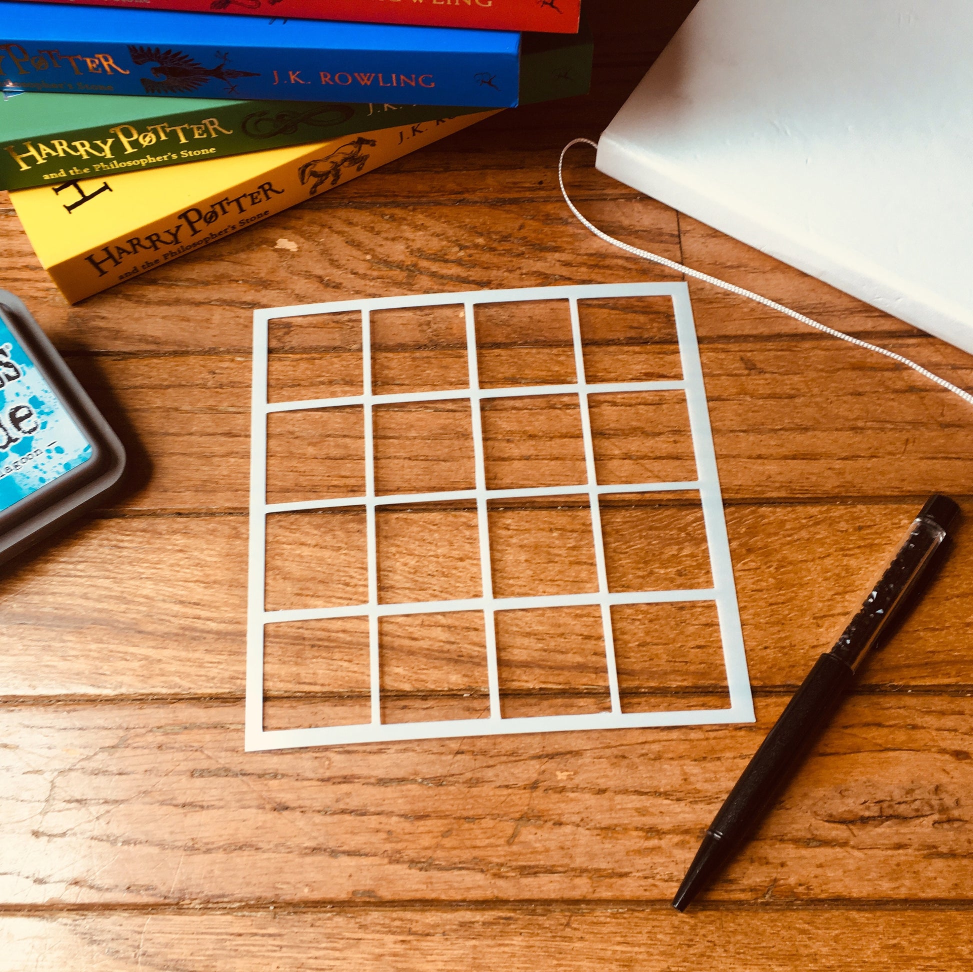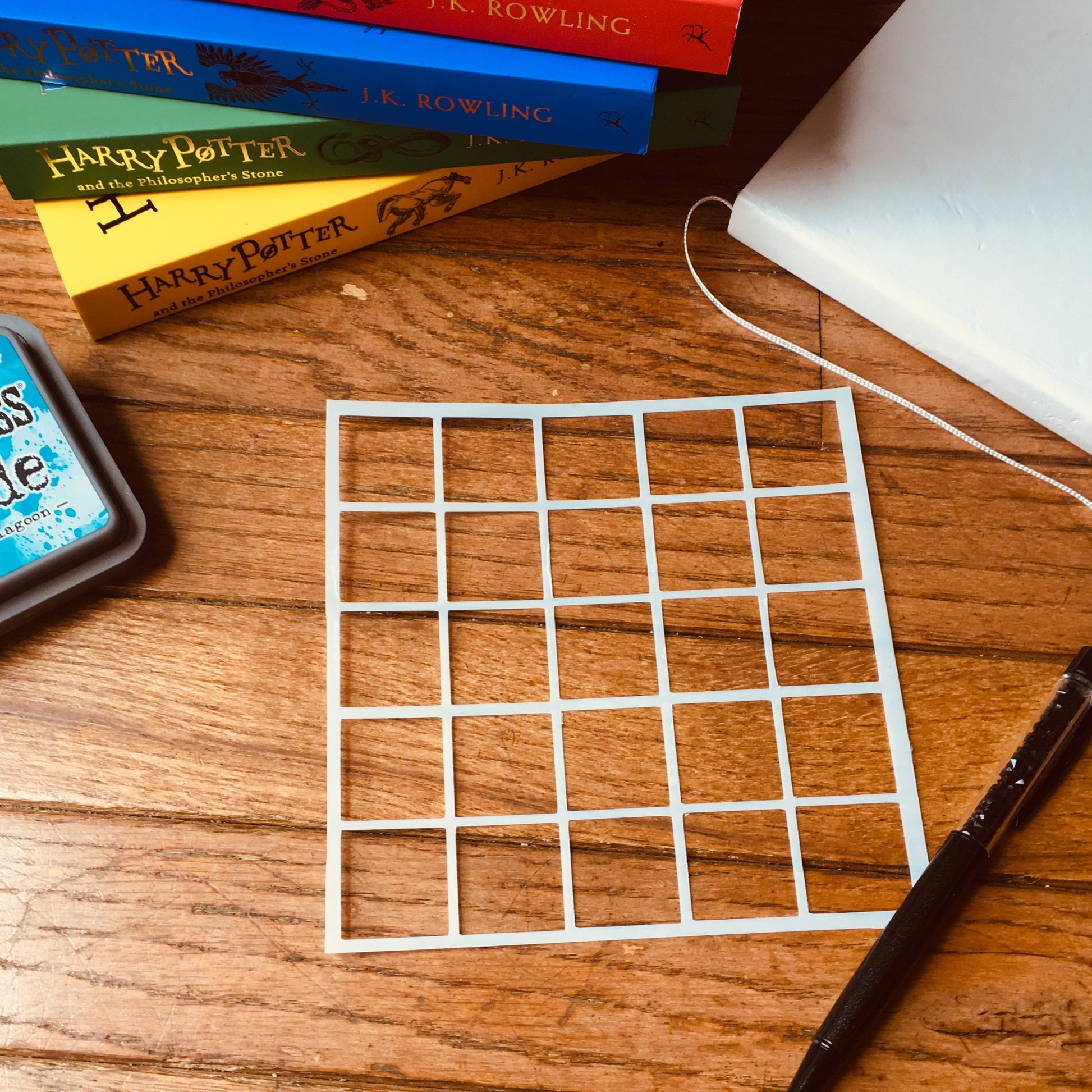 Choose from one of two sizes of the Calendar Box Stencil! The 1.25" box is perfect for larger bullet journals and planners--featuring 4 1.25" stencils per row and column. The 1" box is perfect for smaller bullet journals and traveler's notebook inserts! The 1" box features 5 1" squares per row and column! You will recieve either the 1.25" or 1" stencil. Please choose at checkout! Stencil measures approximately 5.75"x5.75" Use this stencil to create calendars and boxes in your bullet journals or planners!