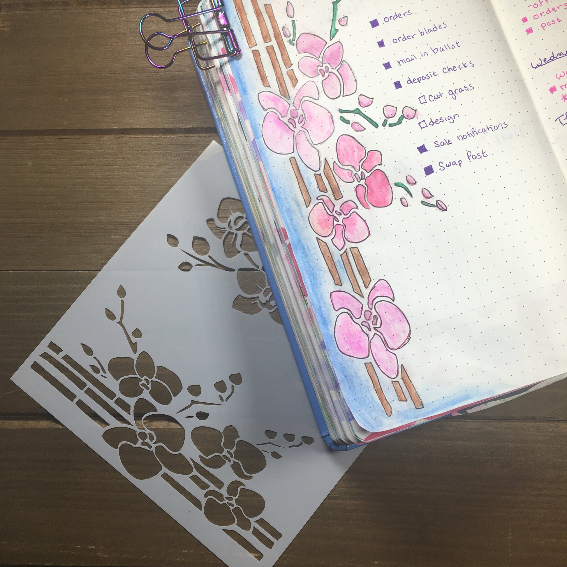 Add a little bit of unique flair to your planners, journals, Bujos, or scrapbooks with the Cherry Blossom Stencil! Great for inking! This stencil is perfect for adding a great background and more!