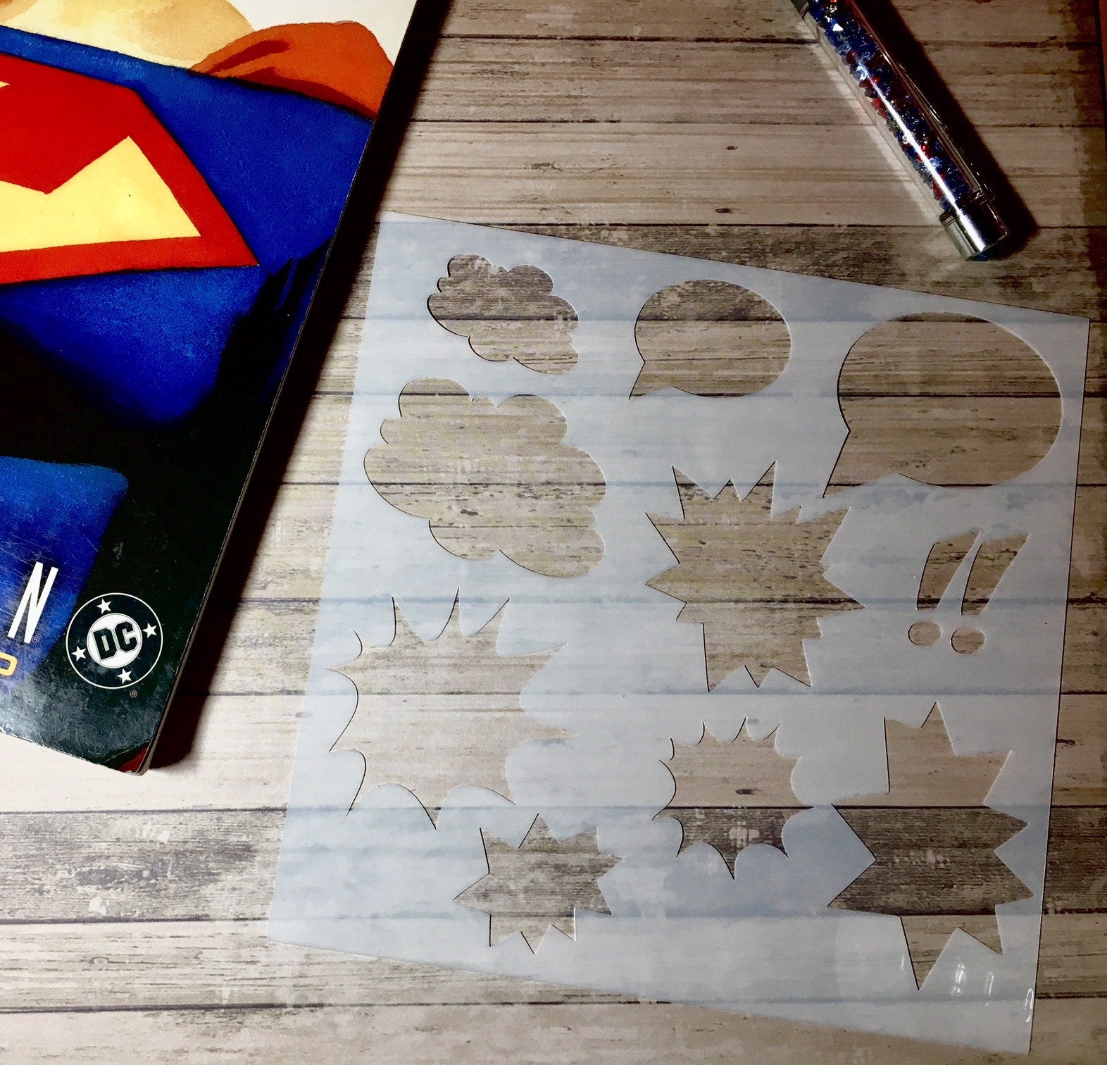 Add a little bit of unique flair to your planners, journals, Bujos, or scrapbooks with the Comic Stencill! Perfect for all your favorite super hero moments! Stencil measures approximately 5.75" by 5.75"