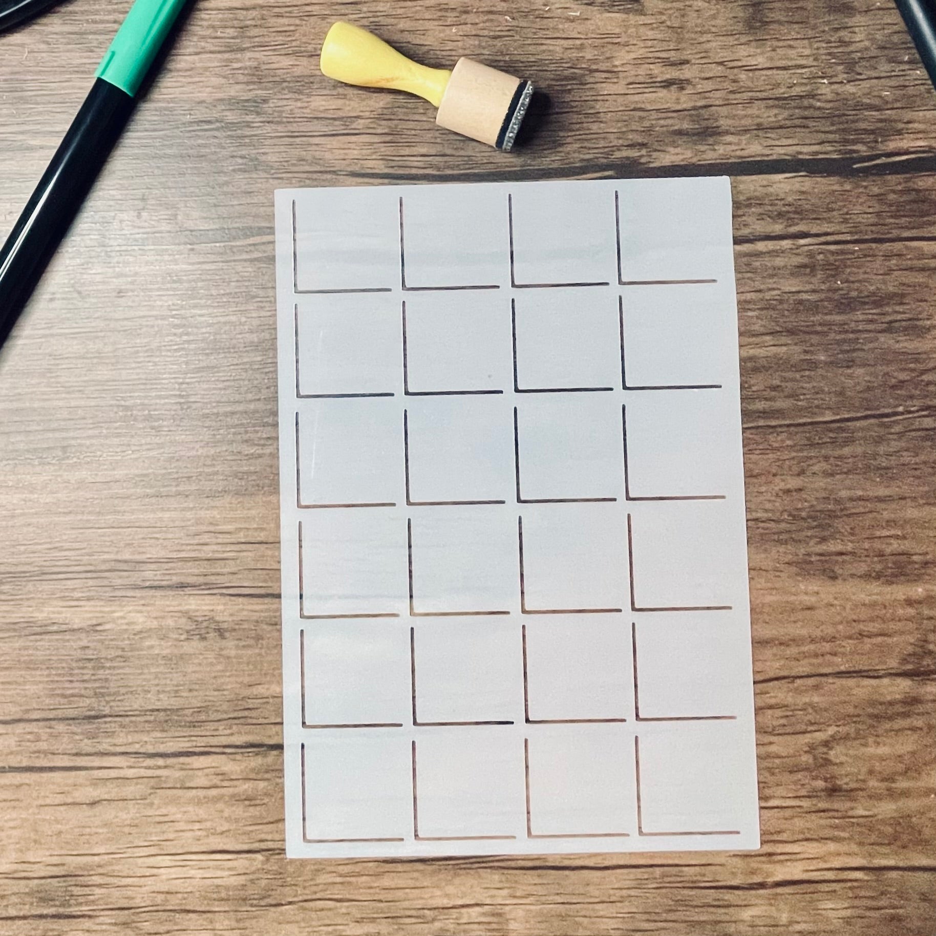 Add a little bit of unique flair to your planners, journals, Bujos, or scrapbooks with the Corner Boxes Calendar Builder A5 stencil! Make a calendar layout easier! These boxes make for a quick calendar build, no matter how many days of the month. Designed for A5 notebooks, but useable in many sizes!