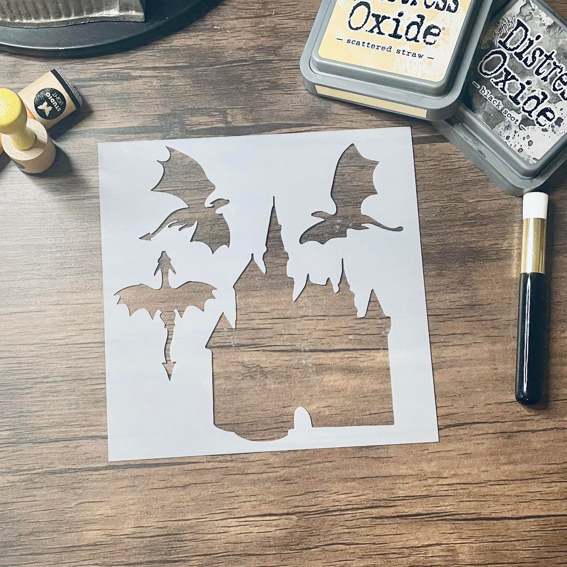 Dragon Castle Stencil Planner/Bullet Journal/Art Journal/Inking Stencil/ bujo planner craft stencil inking card making