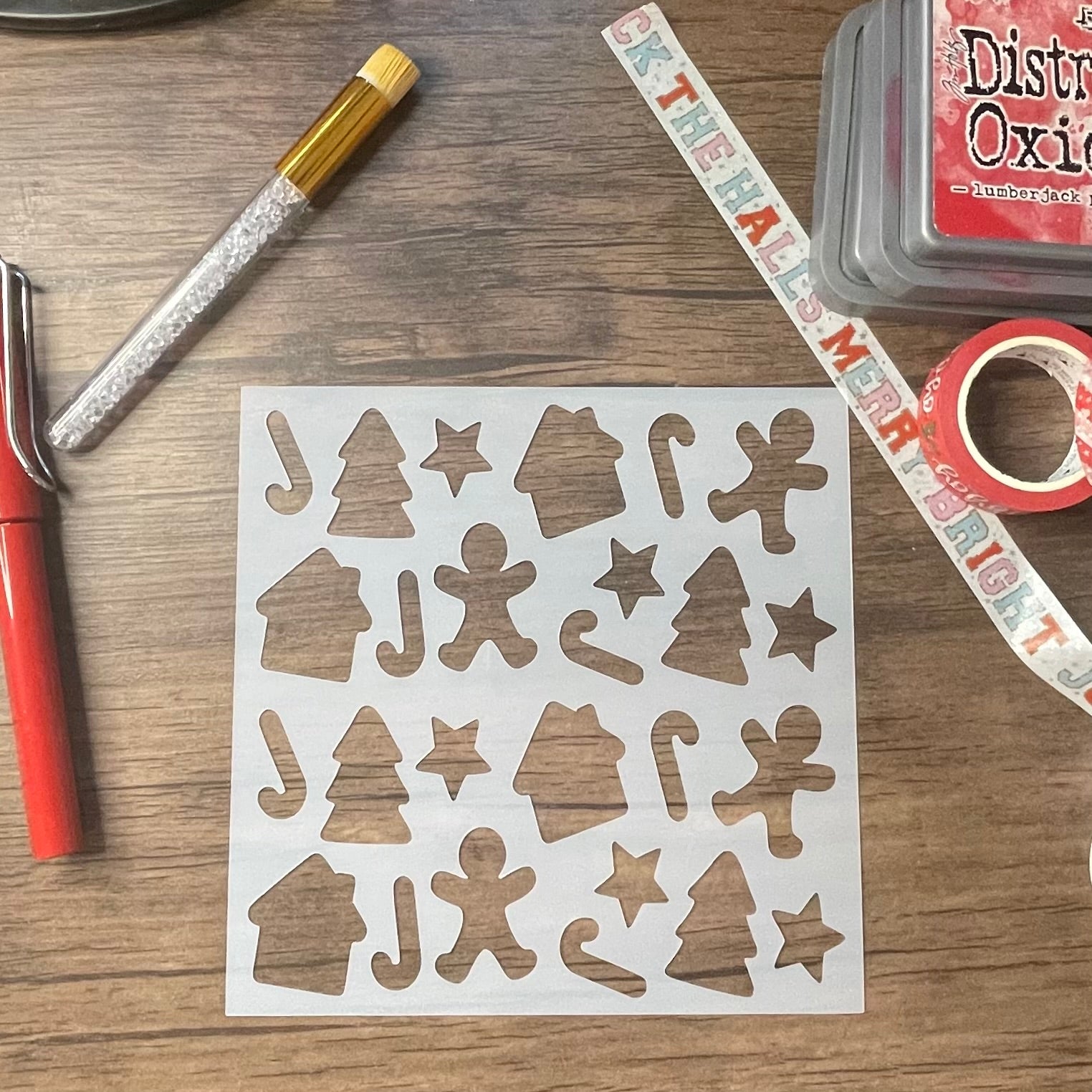 Add a little bit of unique flair to your planners, journals, Bujos, or scrapbooks with the Gingerbread Cookies Pattern Stencil! Great for inking! Perfect for adding a unique touch to cards, journals, planners, scrapbooks, art journals, and more!
