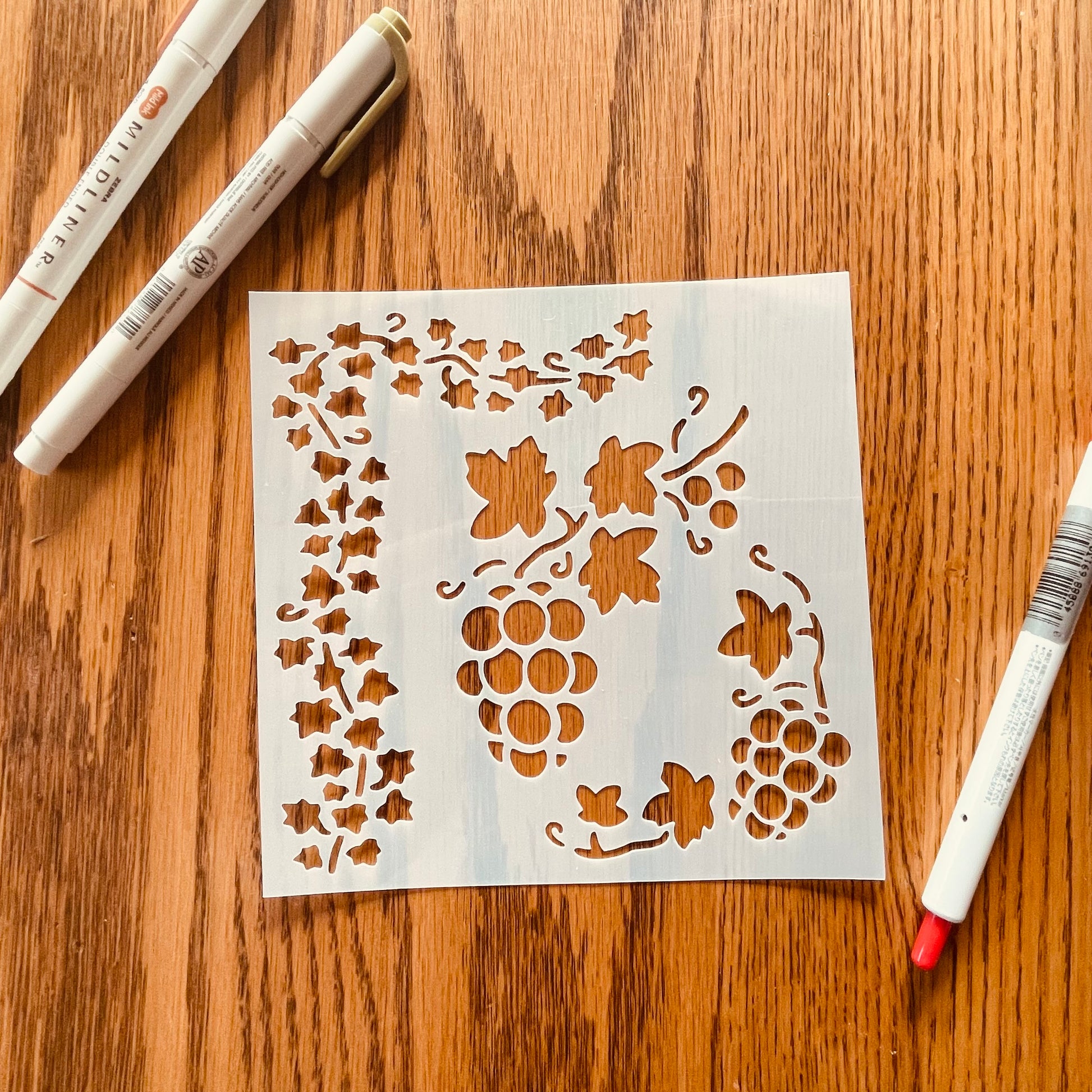 Add a little bit of unique flair to your planners, journals, Bujos, or scrapbooks with the Grape Vines Stencil! Great for inking! Perfect for adding a unique touch to cards, journals, planners, scrabooks, art journals, and more!