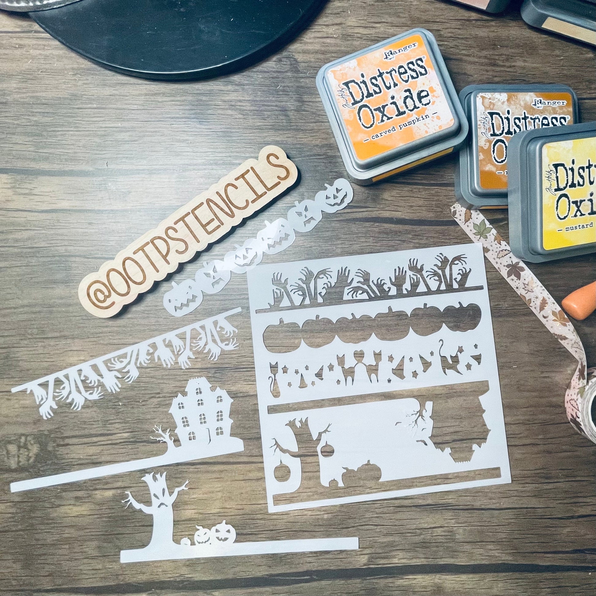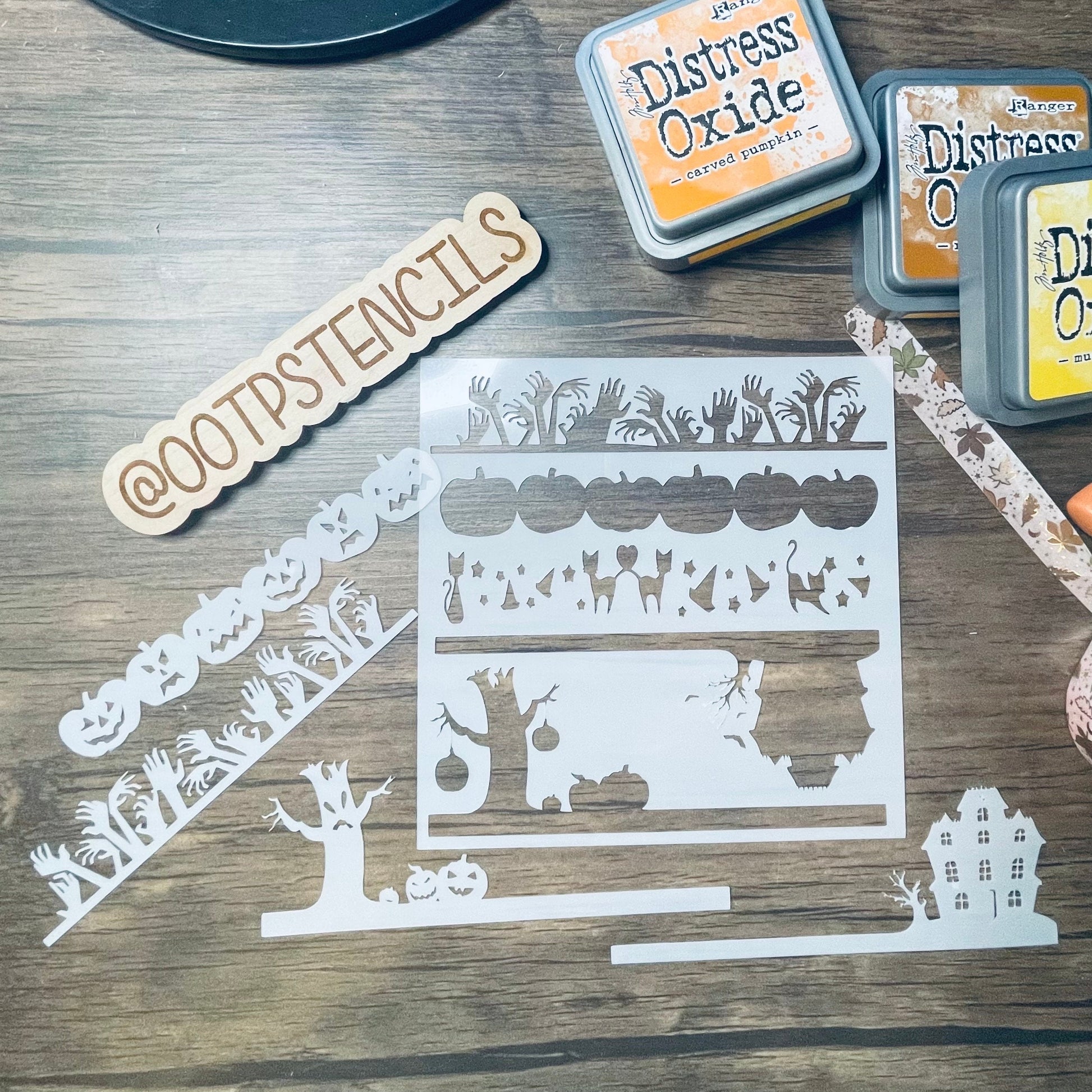 Add a little bit of unique flair to your planners, journals, Bujos, or scrapbooks with the Halloween Borders Stencil! Great for backgrounds and more! Perfect for adding a unique touch to cards, journals, planners, scrapbooks, art journals, and more! Perfect for fall and Halloween fun!