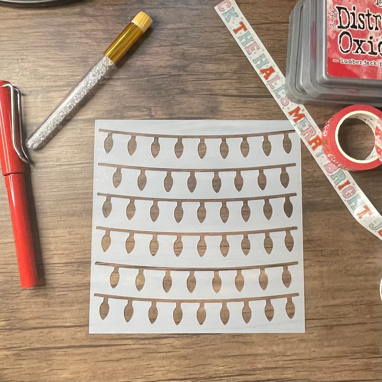 Add a little bit of unique flair to your planners, journals, Bujos, or scrapbooks with the Holiday Lights Stencil! Great for inking! Perfect for adding a unique touch to cards, journals, planners, scrapbooks, art journals, and more!