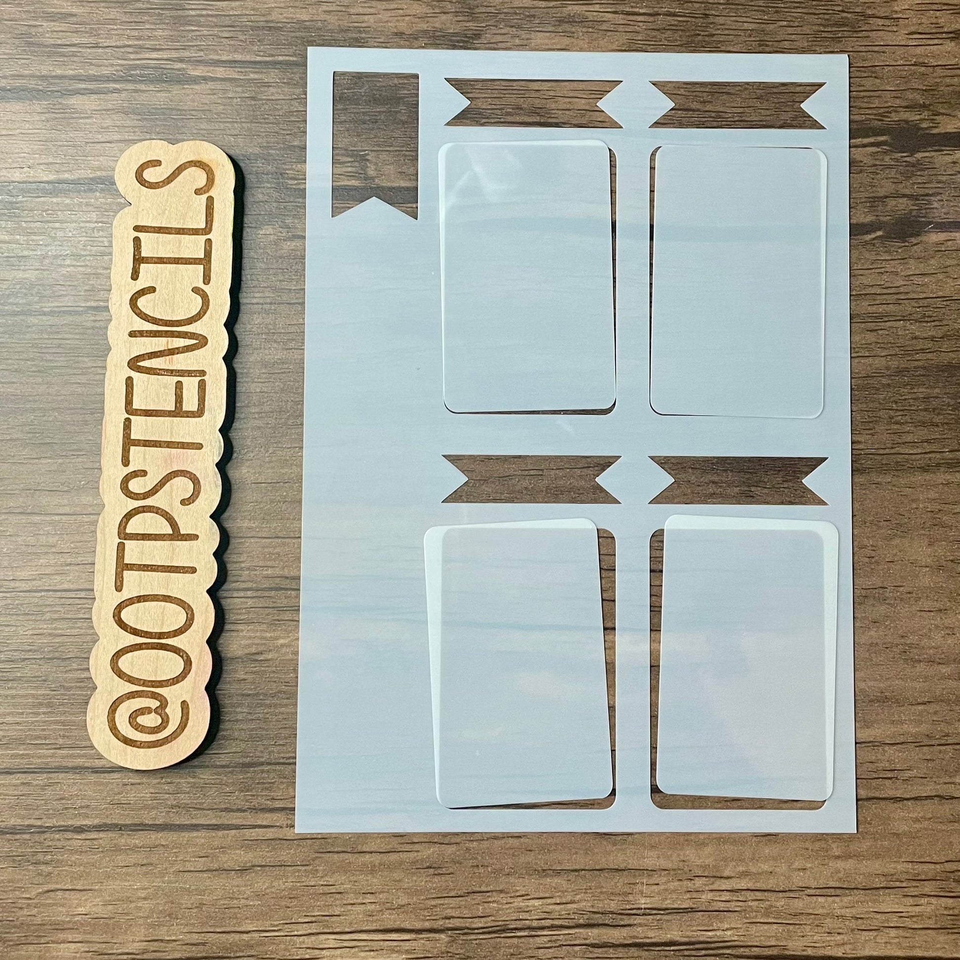 Custom Stencils are available.**All Stencils are made with a flexible plastic material. They are re-useable and washable (light soap and water or just water will take care of most media) with most materials. Some materials may slightly stain the plastic, though this should only be a cosmetic issue, not a functional issue.**