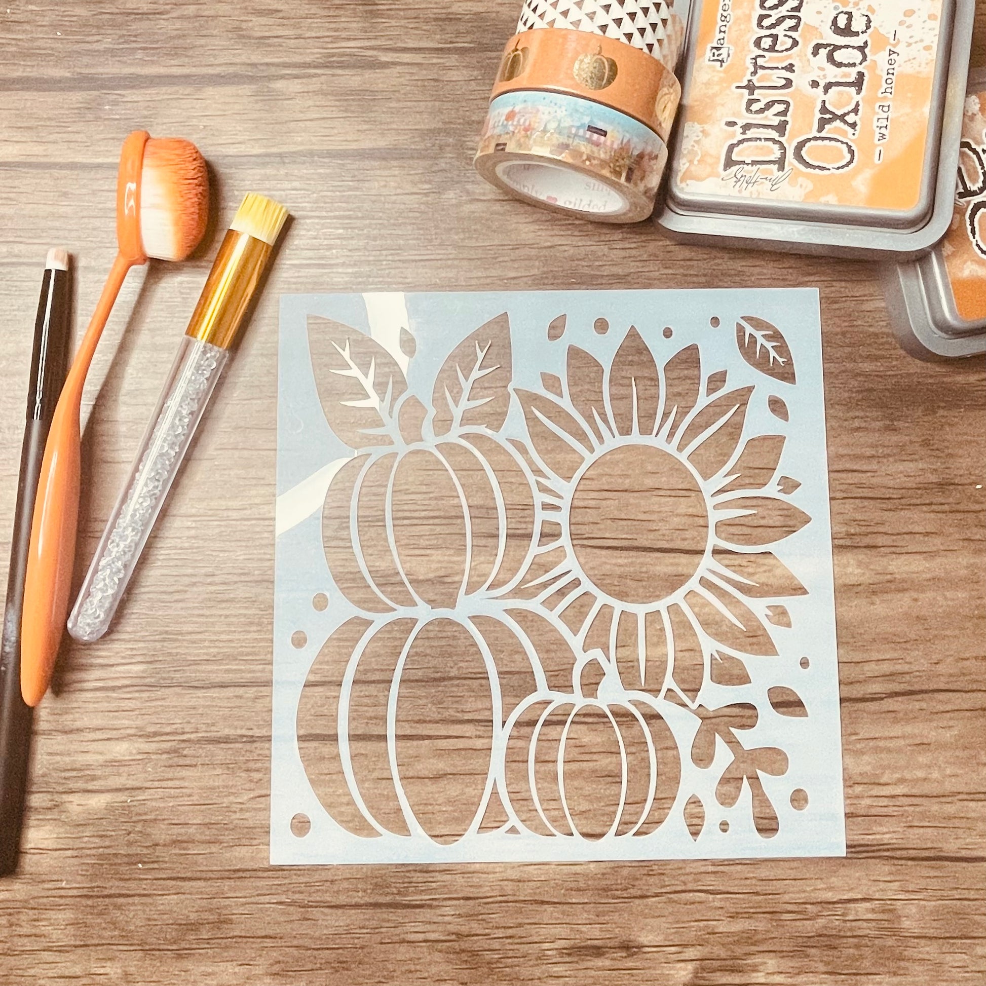 Add a little bit of unique flair to your planners, journals, Bujos, or scrapbooks with the Pumpkins and Sunflower Stencil! Great for inking! Perfect for adding a unique touch to cards, journals, planners, scrapbooks, art journals, and more!