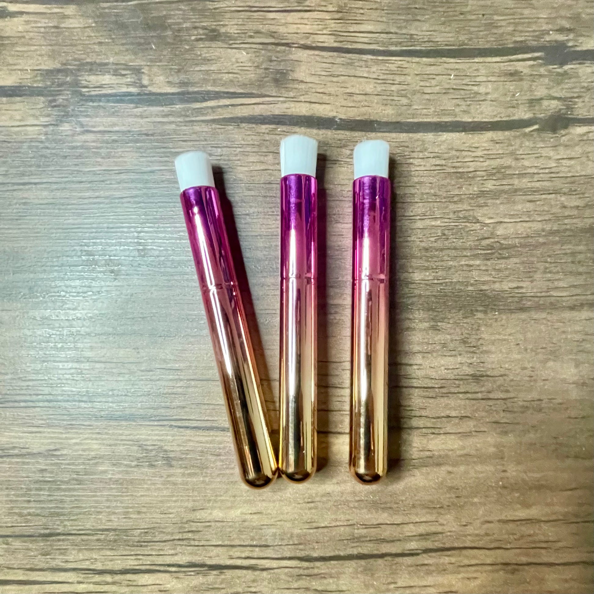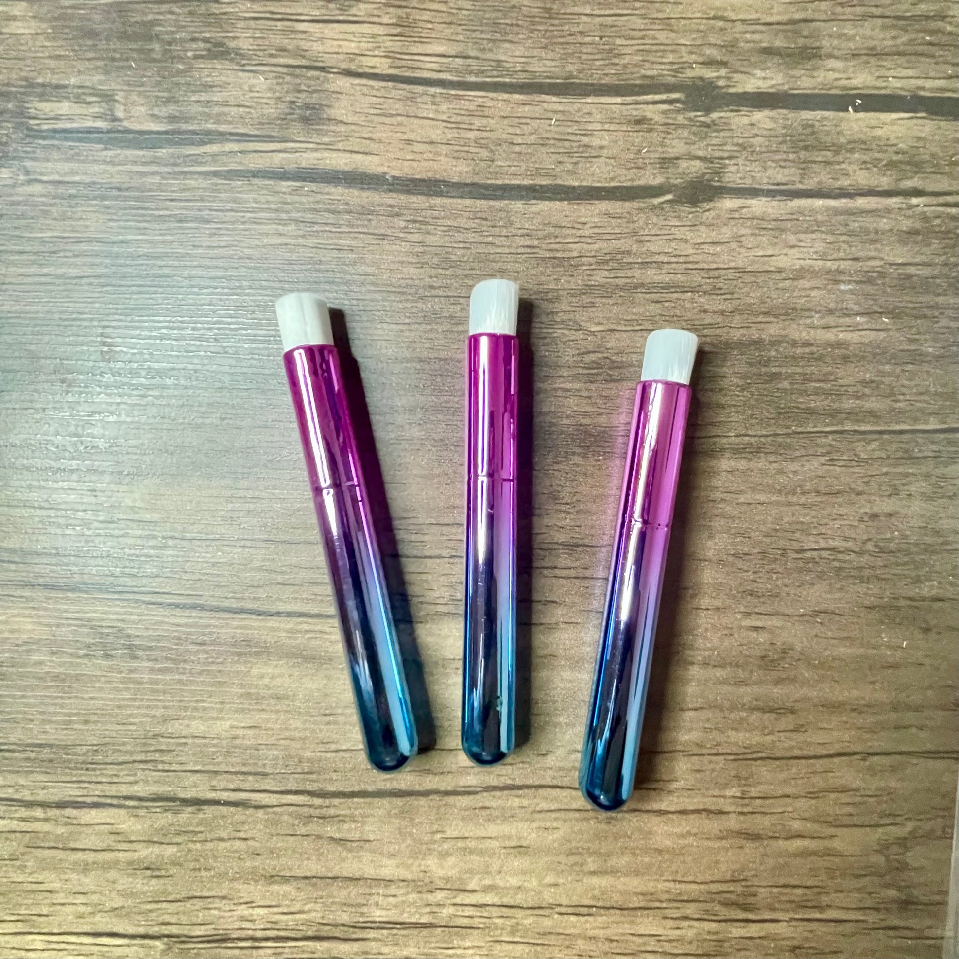 Ink blending brushes are perfect for use blending ink through stencils. They can be cleaned using any makeup brush cleaner or light soap and water. You do not need to clean brushes between use if using the same color family. The bristles may stain based on the medium you use.