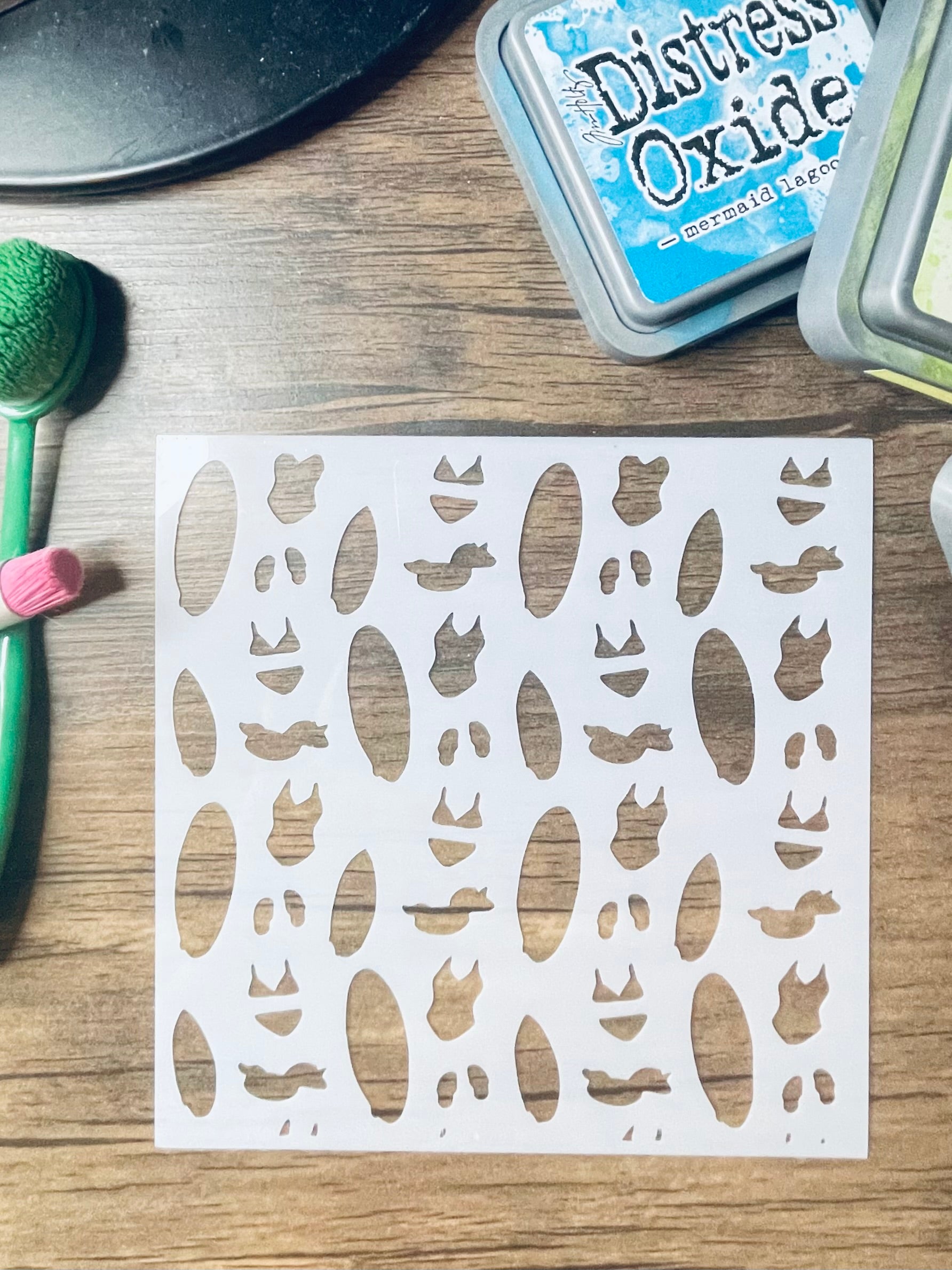 *Depending on ink/paint medium, stencils are washable, usually with water or soap and water. If you are using a medium which stains, please clean off with the appropriate cleaner as soon as possible!