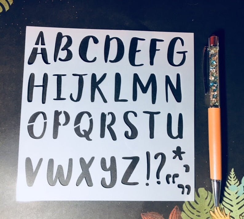 Add a little bit of unique flair to your planners, journals, Bujos, or scrapbooks with the whimsy font Upper Case Stencill! Stencil measures approximately 5.75" x 5.75" Letters vary greatly, ranging from approximately .75" to 1.5" high (with variation).
